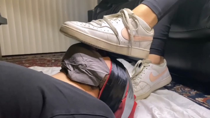 [视频名称] : AJ汗湿脏白袜玉足踩脸脚窒息 汗脚搓鼻孔吸味除臭 重口味恋足调教脚奴 足戒脚戒